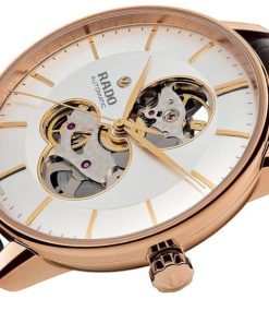 Rado Coupole Classic Open Heart Automatic White Dial Brown Leather Watch, 41mm