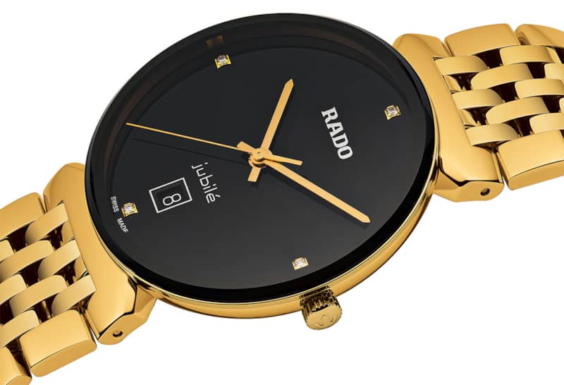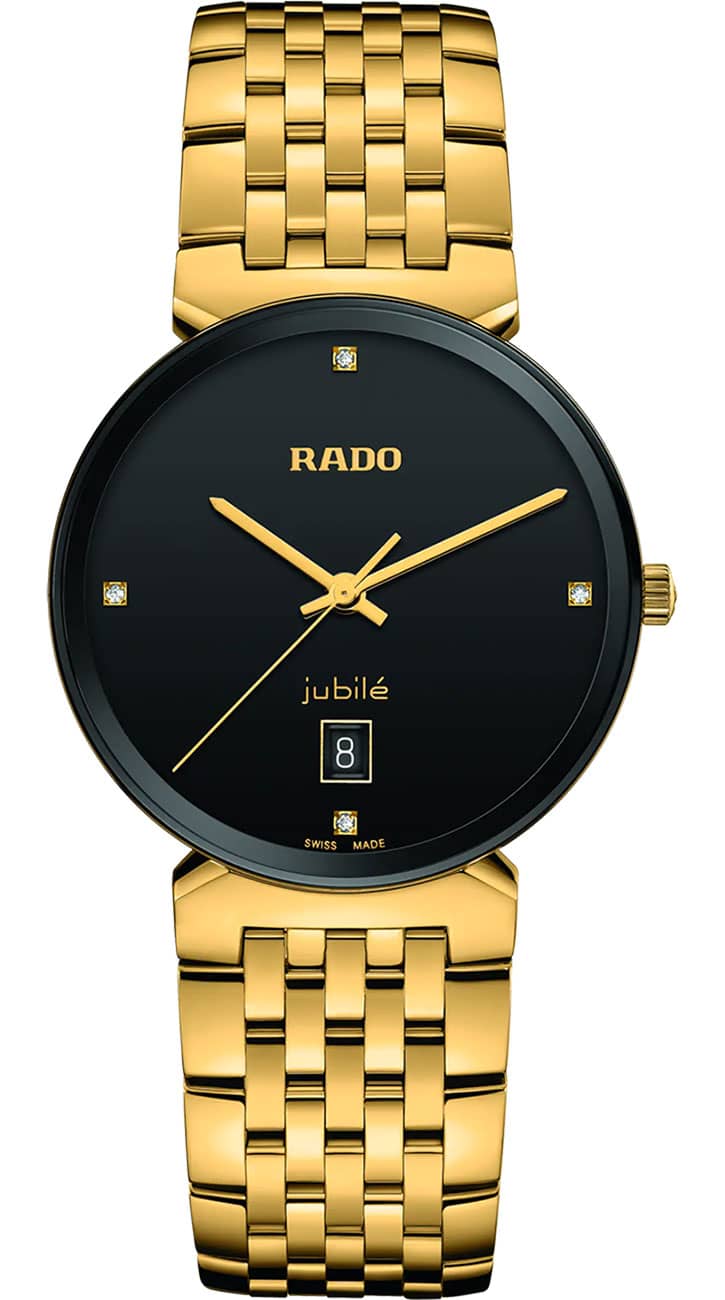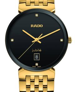 Rado Florence Classic Diamonds Black Dial Gold PVD Bracelet Watch, 38mm