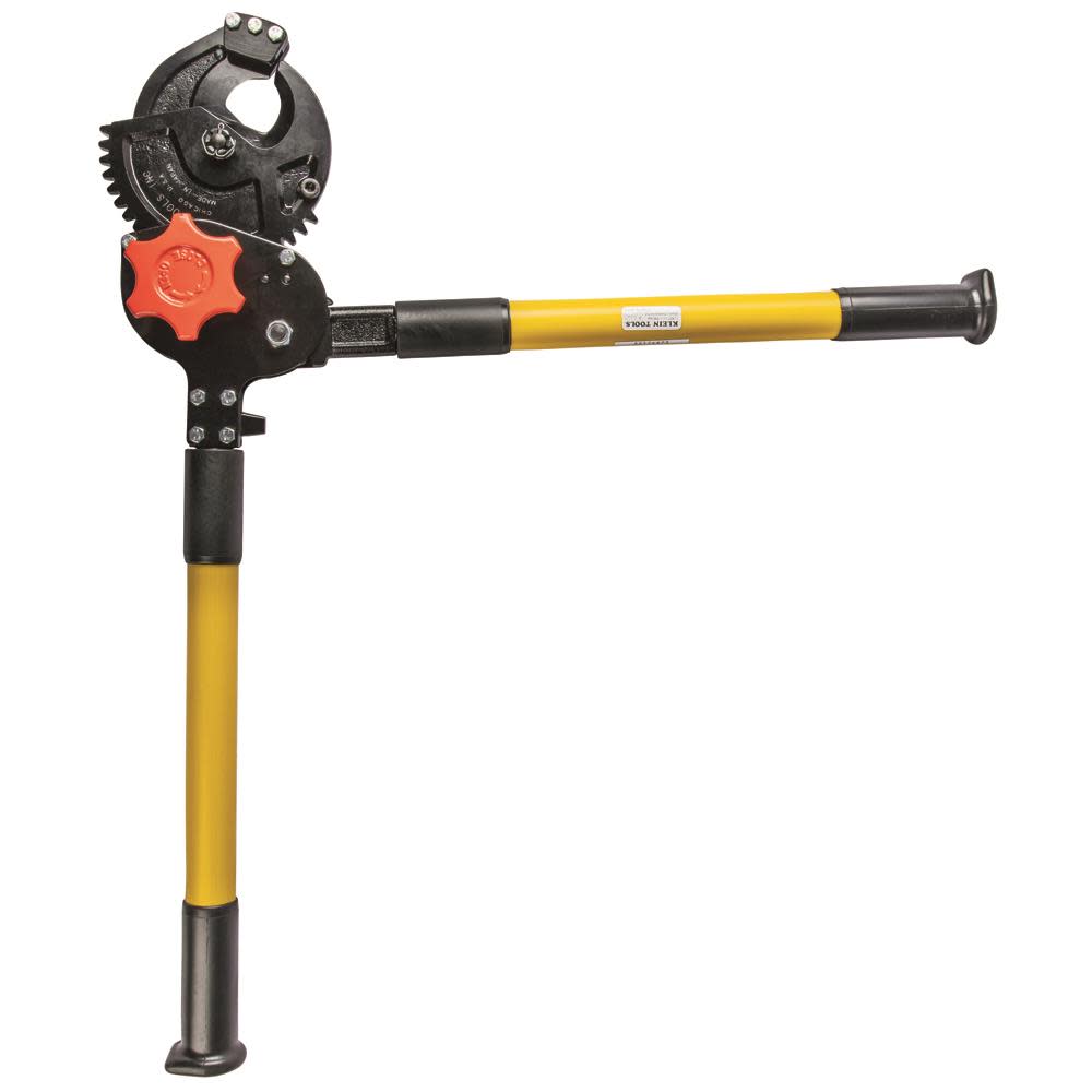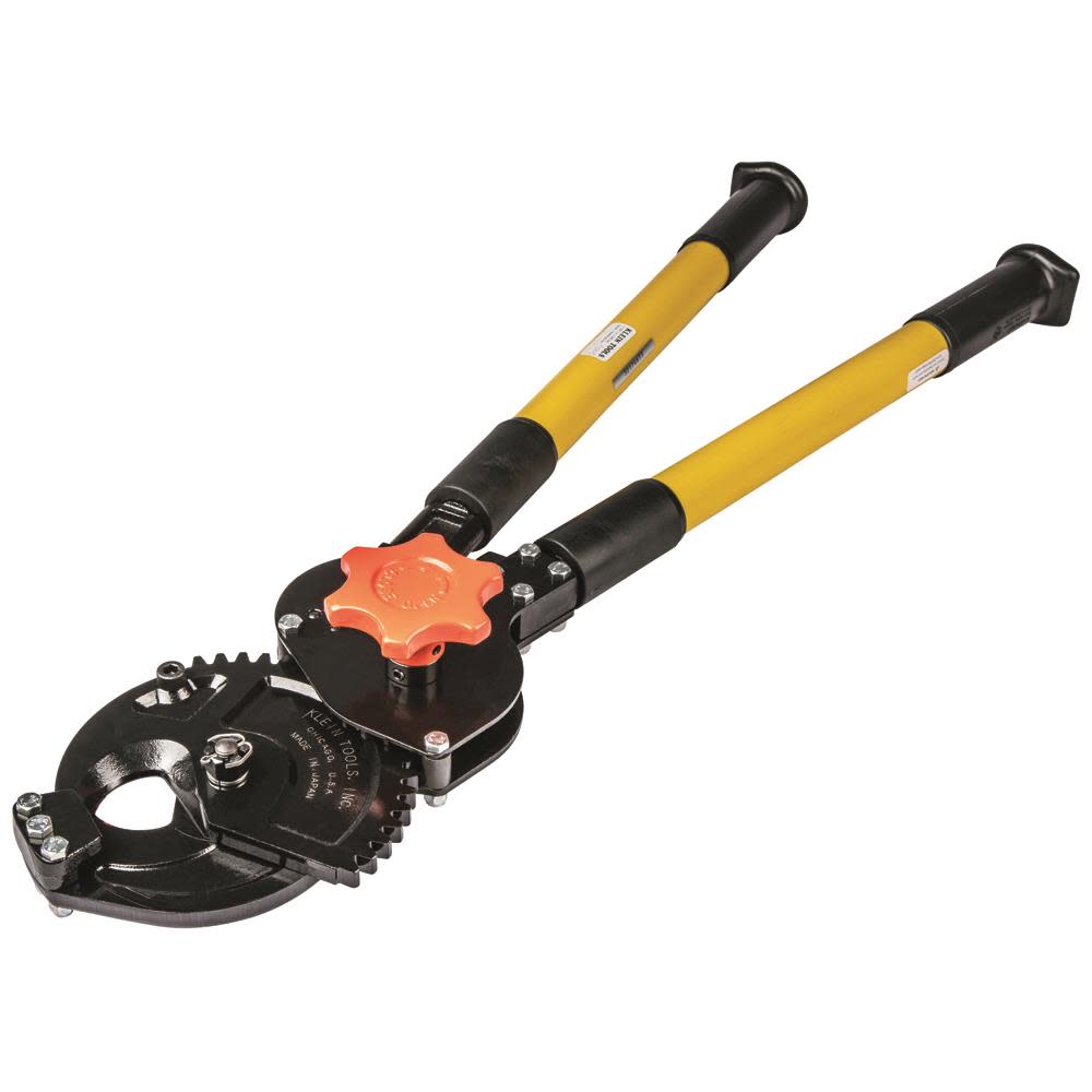 Ratchet-action design of this heavy-duty Ratcheting Cutter provides maximum leverage with minimum effort. Forged, heat-treated, shear-type blades cut steel and ACSR. Long steel handles have heavy vinyl grips for comfort and slip-resistance. Blade-advance knob quickly rotates the blade to engage the cable or other material being cut. Heavy-duty ratcheting design cuts steel and ACSR. Ratchet action for maximum leverage with minimum effort. Fast rotation of the blade with blade-advance knob. Not designed for cutting EHS Guy Strand or reinforcement rod. For more than 160 years, Klein Tools has manufactured premium-quality, professional-grade hand tools that deliver the performance, durability and precision needed to get the job done right. Our family of engineers, workers and craftsman continue to put six generations of expertise into every tool we create by using only the highest quality materials, superior workmanship, and keeping manufacturing as close to home as we can. Klein isn’t just the name of our company, it’s also our family name. And since we’re an American company that’s family-owned and family-run, you know you can count on us to be here tomorrow. Klein Tools doesn’t just make great products, we make great products that stand up to the demands of the professionals who use them every day … Since 1857.