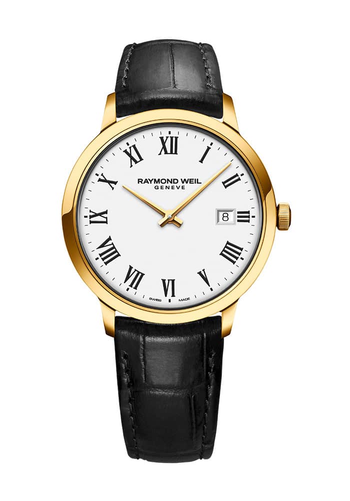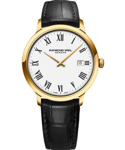 Raymond Weil Toccata Quartz White Dial Black Leather Strap Watch, 39mm