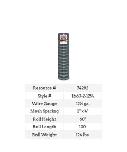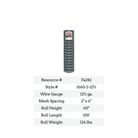 Red Brand Welded Wire, 2 x 4 in Mesh, 12.5 ga, Galvanized, 100 ft Length, 60 in Height