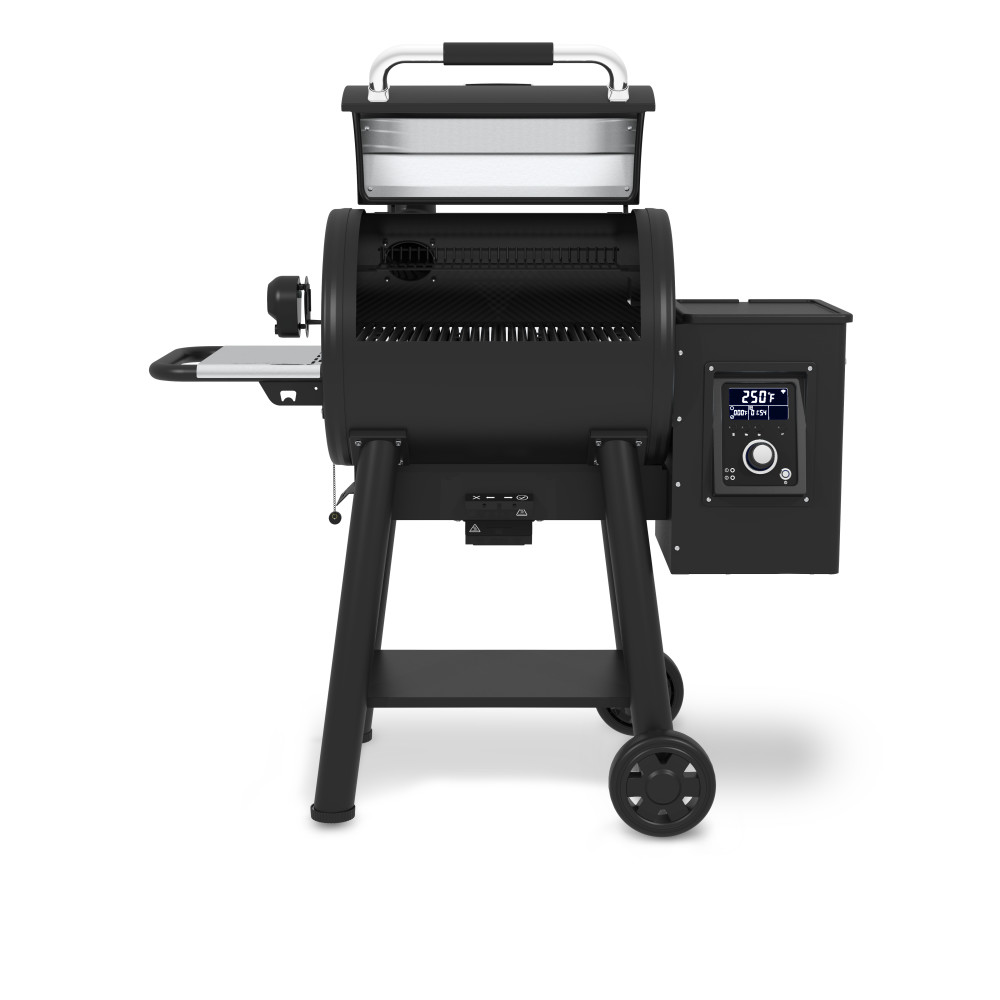 The Regal Pellet 400 grill uses wood pellet fuel and a digital controller to provide the ultimate grill and smoker experience