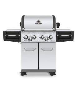 The Regal? S490 Pro features 695 sq. in. total cooking space including porcelain coated warming rack, solid 9mm stainless steel cooking grids, stainless steel Flav-R-Wave? cooking system, 4 stainless steel Dual-Tube? burners, stainless steel side shelves, illuminated control knobs and an enclosed cabinet base.