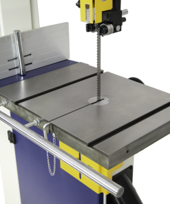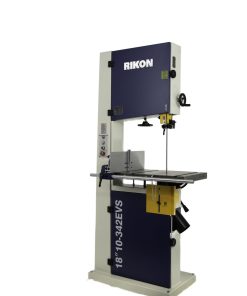 18 In. Bandsaw 10-342 is Rikon’s newest model with many patent pending features that professionals will enjoy – including spring-loaded tool-less blade quids, quick-adjust fence system and quick-lock trunnion table angling system, plus, a quick release blade tension lever, large adjustment handles, hinged safety blade guard with sight window. 2.5 HP motor provides ample power for most every work encountered. Pre-lubricated, sealed thrust and side ball bearing guides give smooth blade support during difficult cuts. Includes 6 In. tall rip fence with re-saw bar and electronic variable speed.