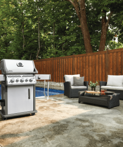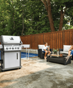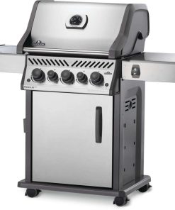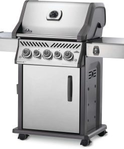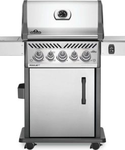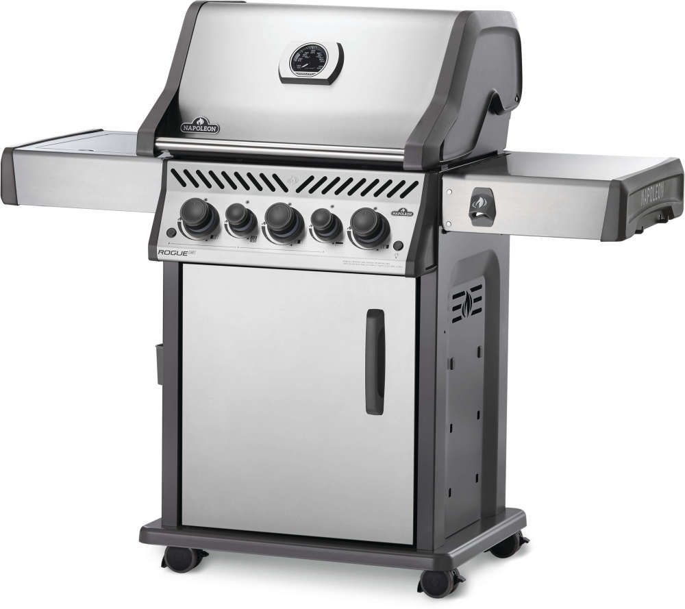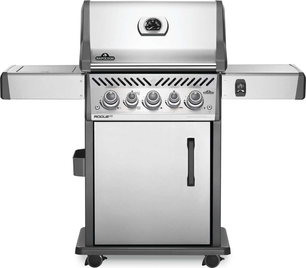The Napoleon Rogue? SE 425 Stainless Steel Propane Gas Grill with Infrared Side Burner and Rear Burner is a durable stainless steel grill. Featuring three main burners, a rear rotisserie burner, and a high top lid, this grill has everything you need to create gourmet meals. Sear restaurant-style steaks on the integrated sear station, while generous side shelves provide plenty of prep space.