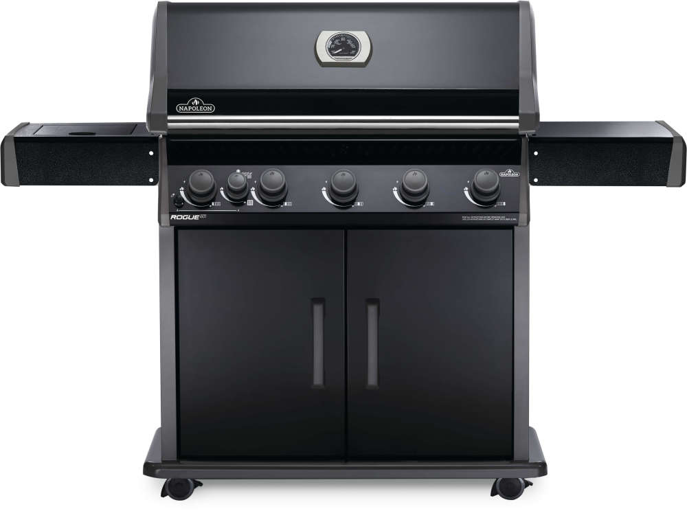 BBQ your way with high-quality grilling at an affordable price, the Rogue? XT Propane Gas Grill with Infrared Side Burner in black is a versatile addition to any backyard. This grill is made from durable stainless steel and features folding side shelves for extra space. Easily move to where the action is with the locking casters. Inside, dual level sear plates vaporize drips and five tube burners light instantly with the JETFIRE? ignition system. Feed a crowd; with 980 square inches of total cooking area which includes the infrared side burner, it’s no trouble at all. You’ll know it’s a Napoleon with the iconic porcelain coated cast iron WAVE? cooking grids for those distinctive sear marks. BBQ your way and use this grill to sear, smoke, sizzle, bake, grill, roast and authentic charcoal grilling. Grill different and go Rogue? with the Rogue? XT 625 Gas Grill.