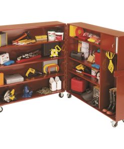 The JOBOX rolling clam shell cabinet provides an easy to move storage solution for any plant floor or maintenance bay. The 10 gauge latching hasp is specifically designed to prevent pry bars and cutting tools from accessing the lock providing optimal security. The top and bottom shelves are moveable creating customizable storage solutions. The 692990 has eight 4 in. heavy duty casters and 58 cubic feet of storage.
