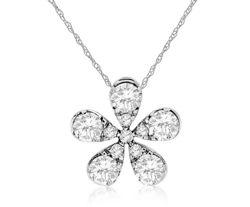 Royal Jewelry 14K White Gold Floral Diamond Pendant Necklace
