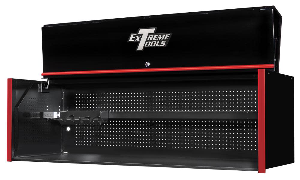 Extreme Tools, Inc. develops cutting-edge innovative designs in professional and portable tool storage. Our goal is to create and build the highest quality tool boxes at extremely competitive prices to make owning a tool box affordable for everyone. The RX series extra deep hutch has adjustable shelf with built-in slots/holes for organizing tools, a power strip with USB ports, power tool rack and a hutch shelf that is engineered to handle removable accessories.