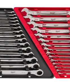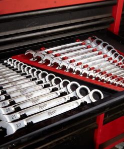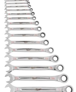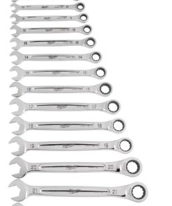 Milwaukee??s ratcheting combination wrenches offer an industry-leading 2.5?? of arc swing, allowing our users to work quickly and efficiently even in the tightest of spaces. Our durable double-stacked pawls in the ratcheting mechanism offer longest ratchet life and best access with 144 ratcheting positions. The MAX BITE? open-end grip improves the wrench’s grip on nuts and bolts, offering 25% more torque than smooth-faced wrenches. The comfortable I-Beam handle design allows superior user comfort. Milwaukee wrenches feature ink-filled size labels for easy size identification, as well as quick distinction between SAE and metric sets.