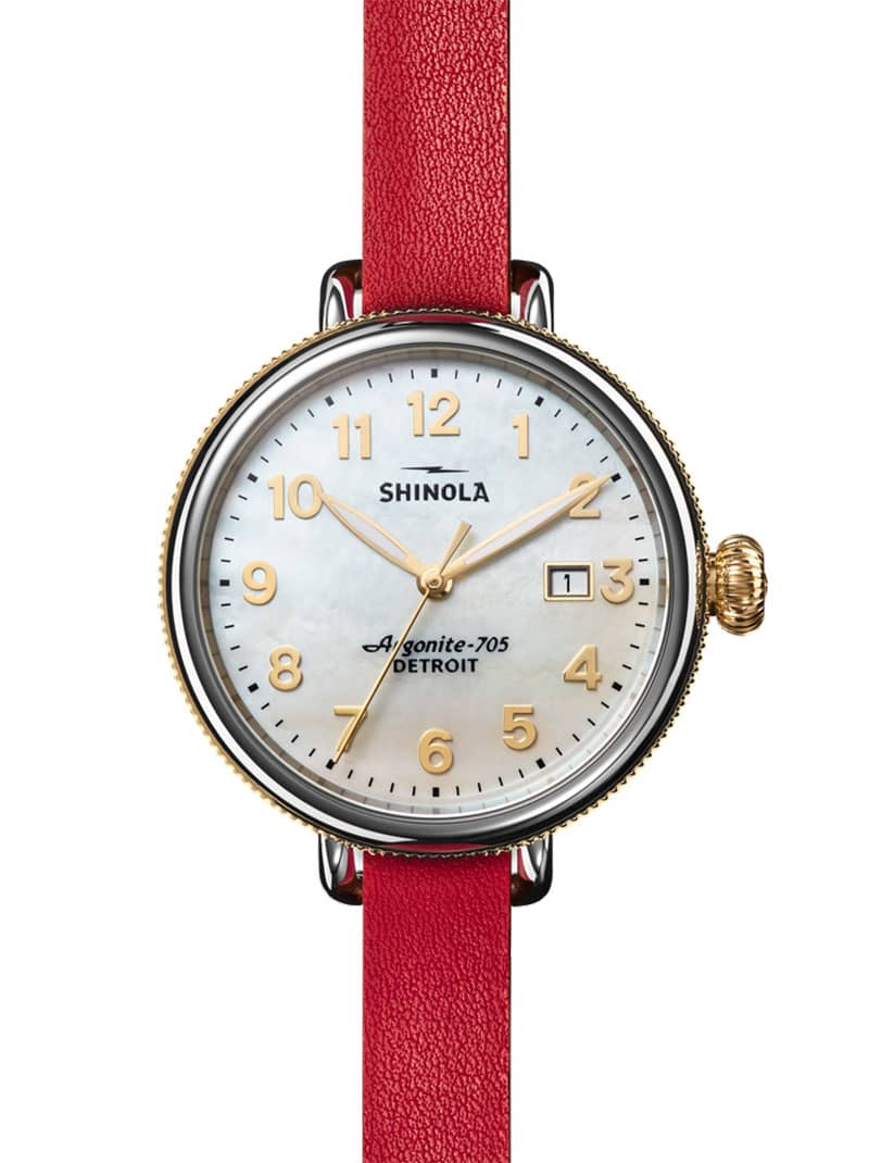 Shinola The Birdy Quartz Bourbon/Crimson Leather Strap 38mm Watch