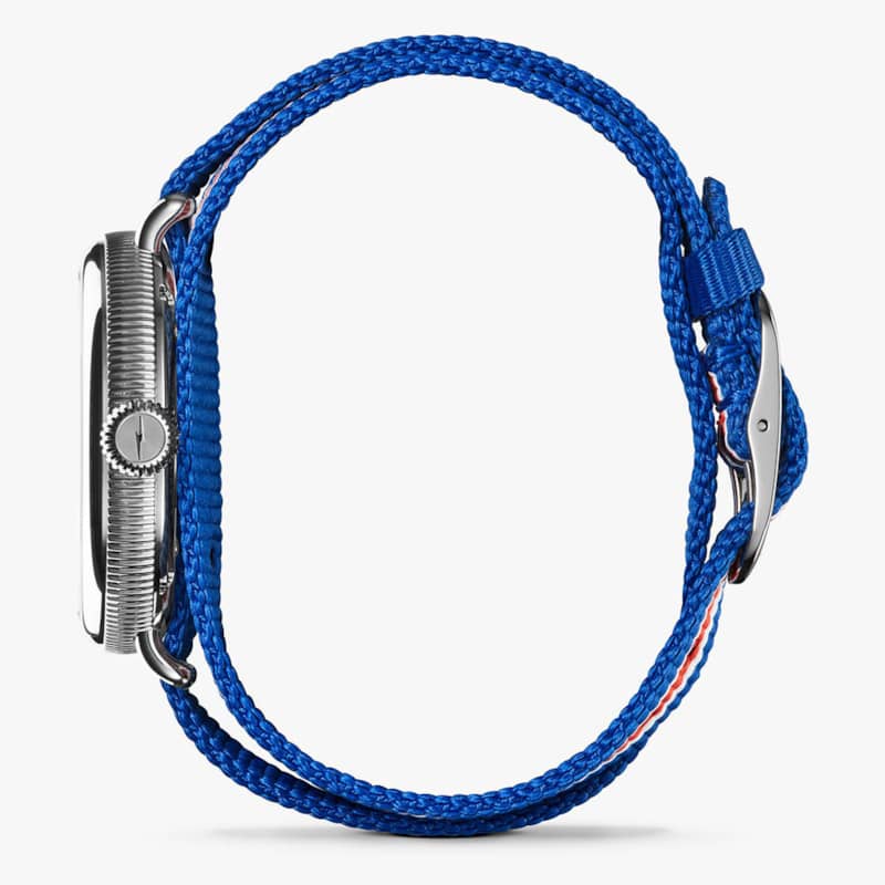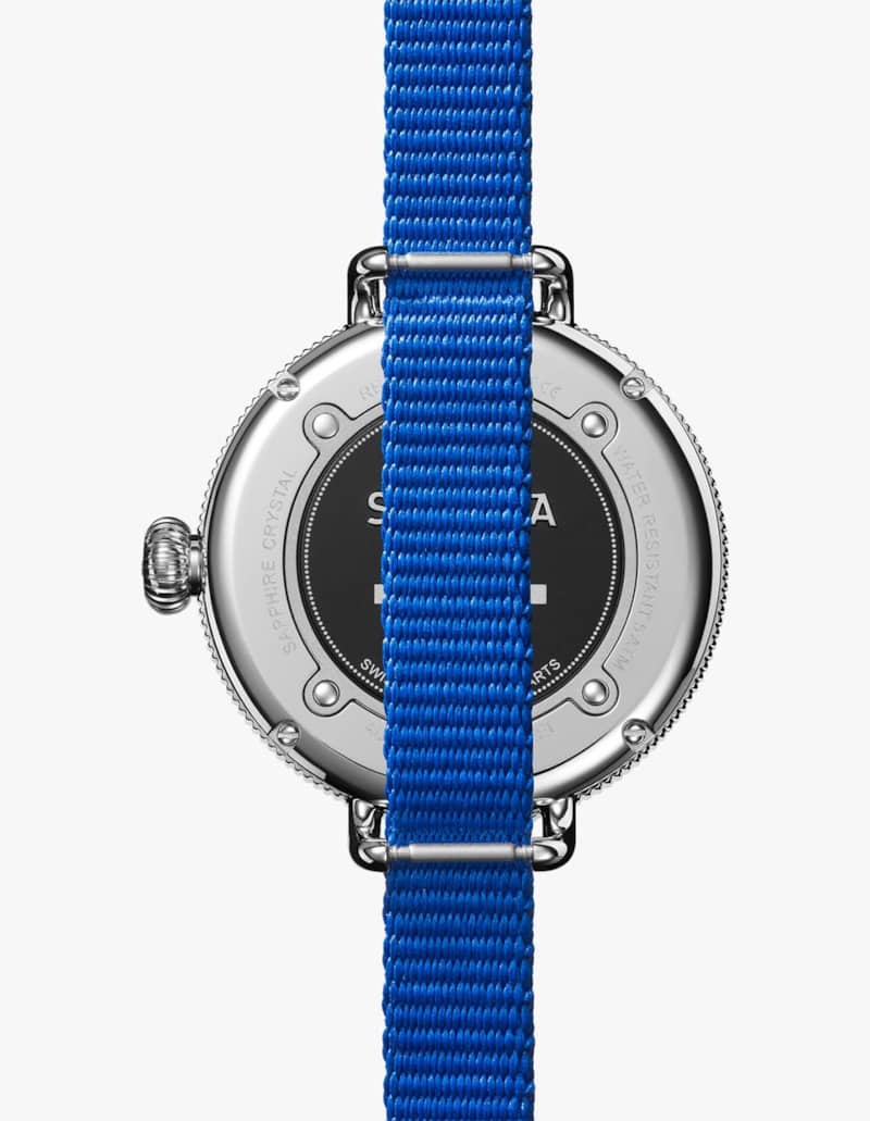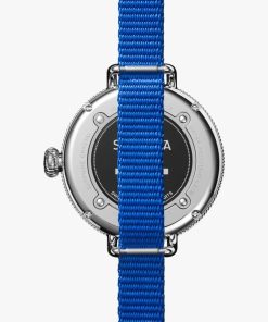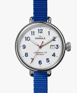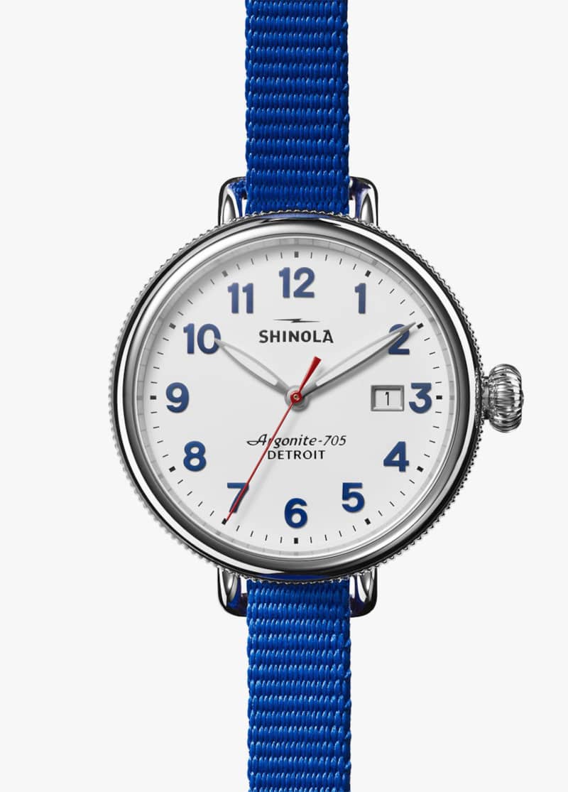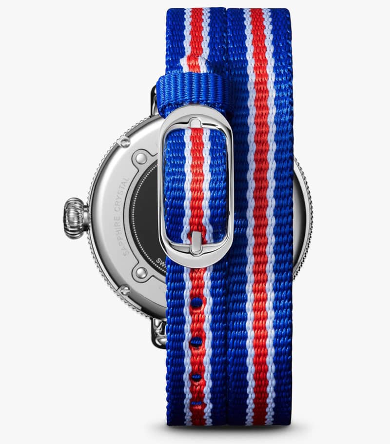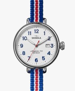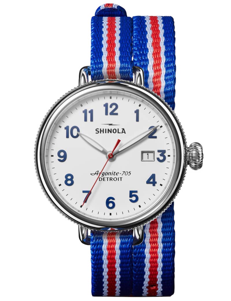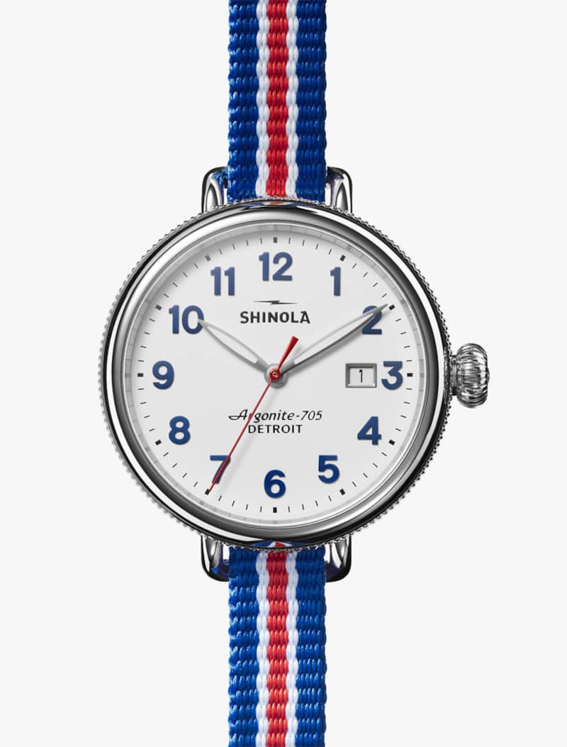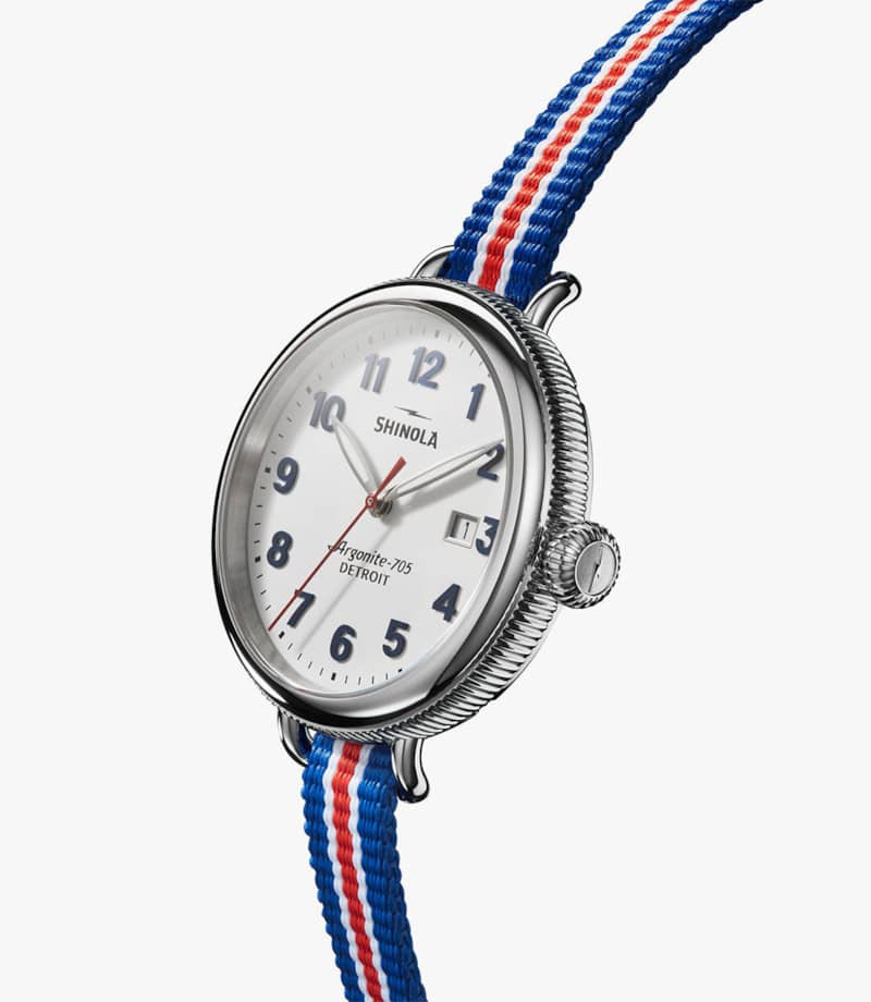 Shinola The Birdy Quartz Red/White/Blue Strap Watch, White Matte Velvet Dial, 38mm
