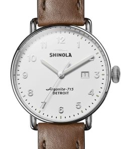 Shinola The Canfield Alabaster Dial Brown Leather Watch, 43mm