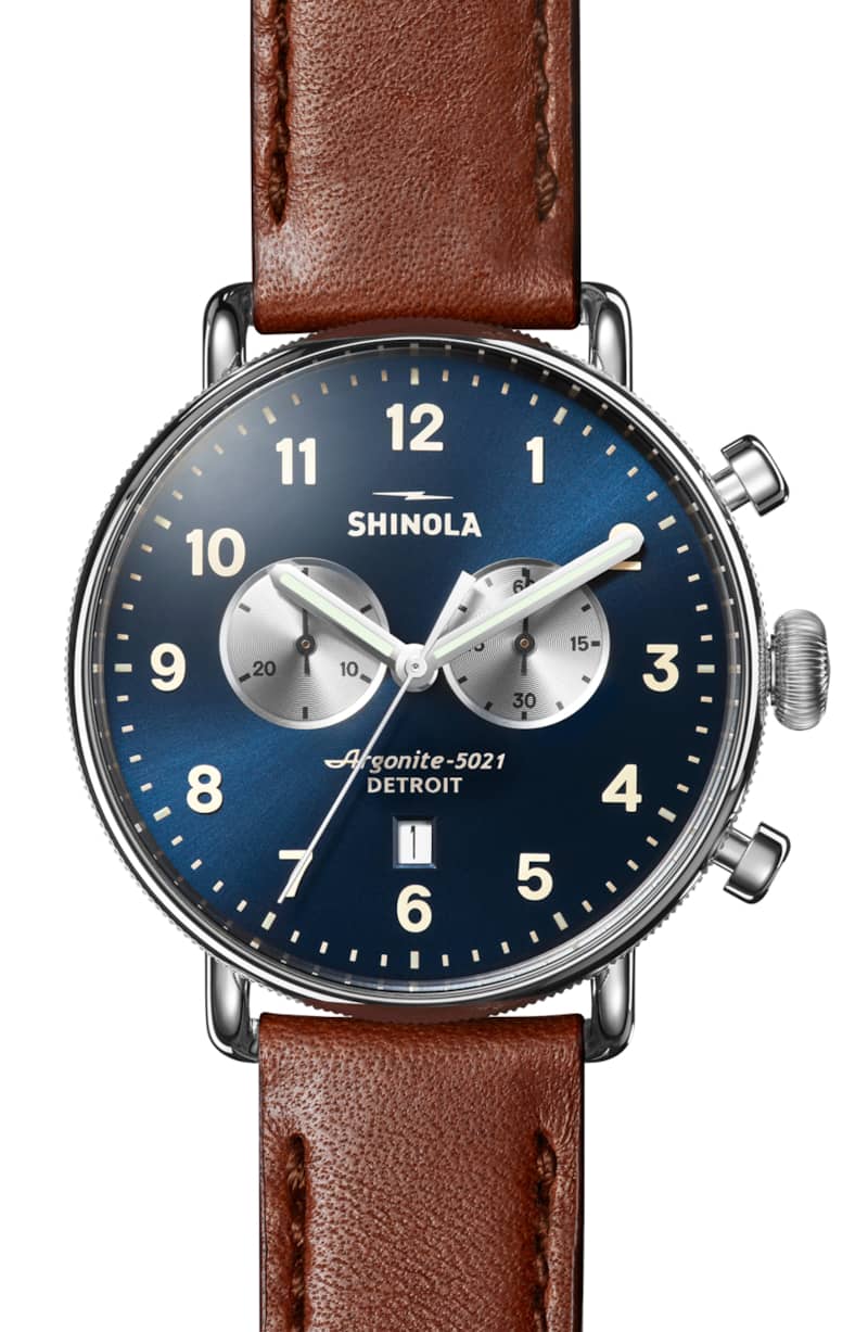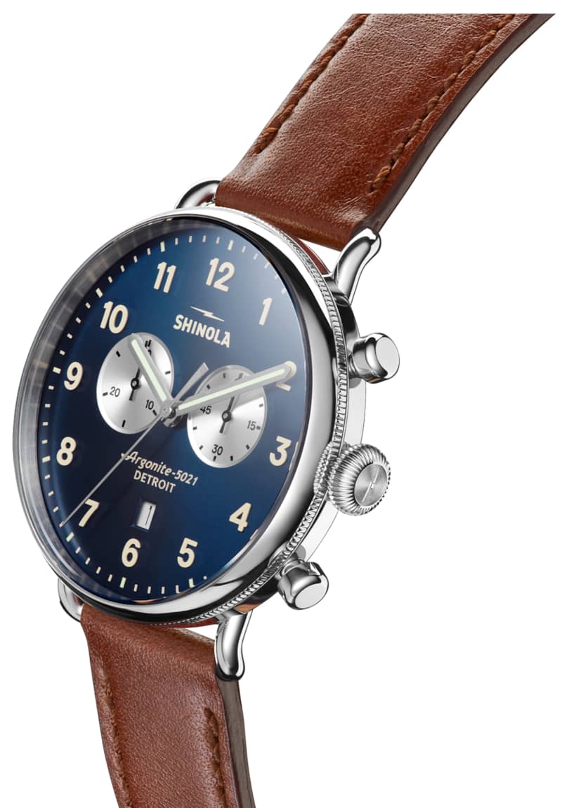 Shinola The Canfield Chrono Blue Dial Brown Leather Watch, 43mm