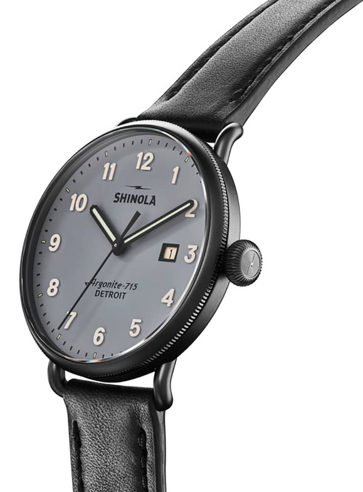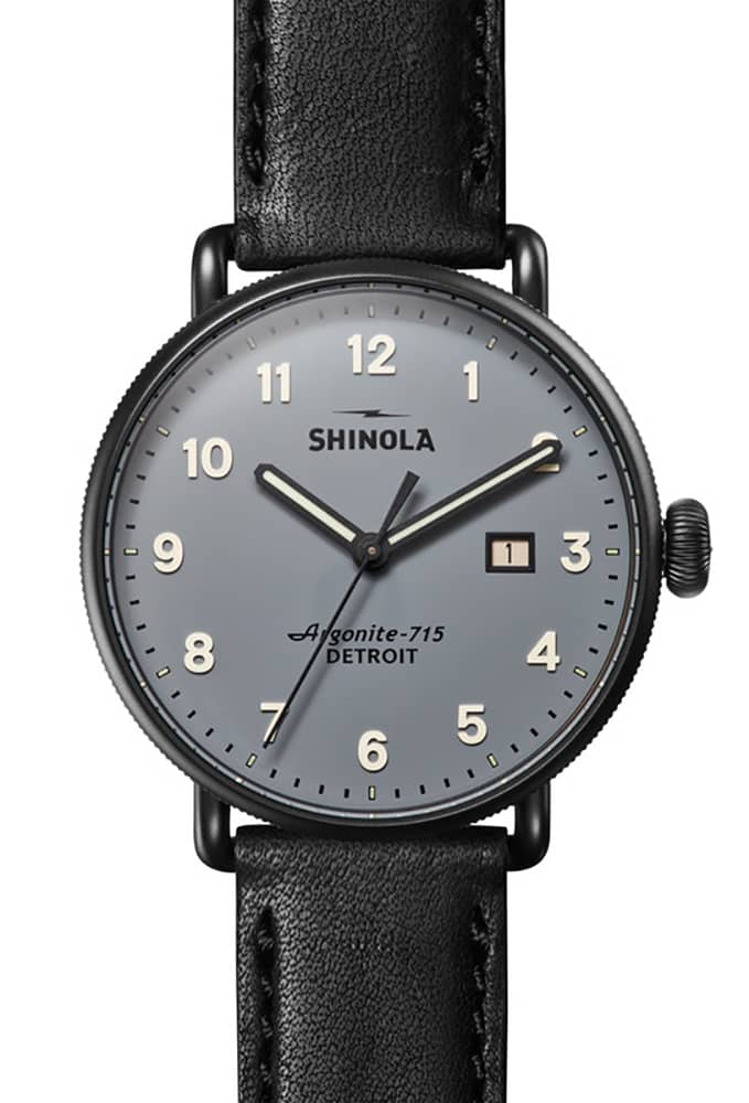 Shinola The Canfield Gray Dial Leather Watch, 43mm