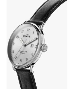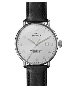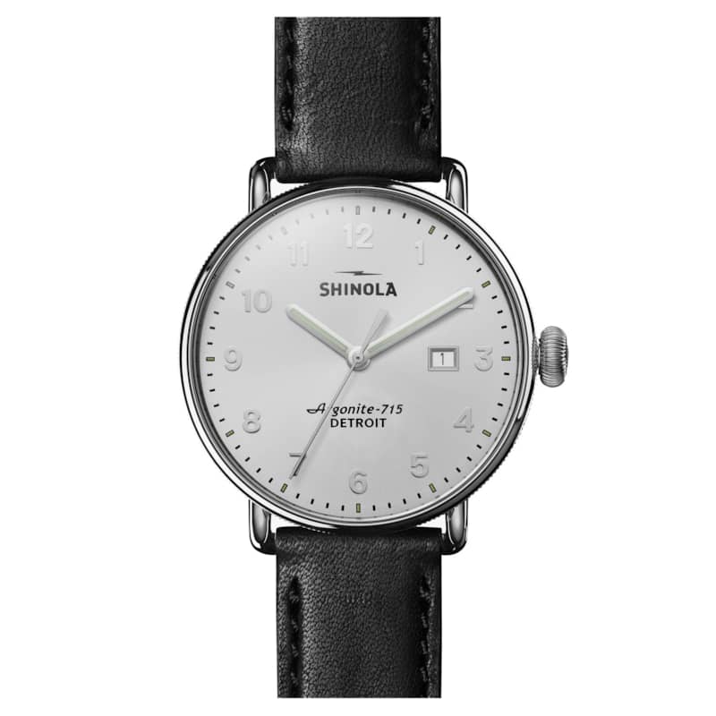Shinola The Canfield Silver Sunray Dial Leather Watch, 43mm