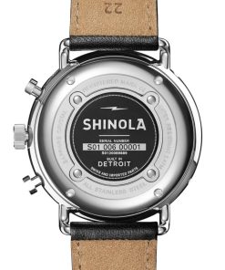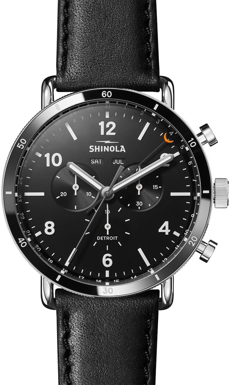 Shinola The Canfield Sport Chronograph Black Dial & Leather Strap Watch, 45mm