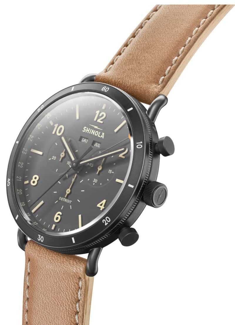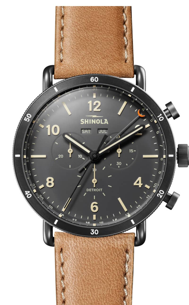 Shinola The Canfield Sport Gray Dial Natural Leather Strap Watch, 45mm