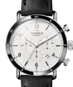 Shinola The Canfield Sport White Dial Black Leather Watch, 40mm