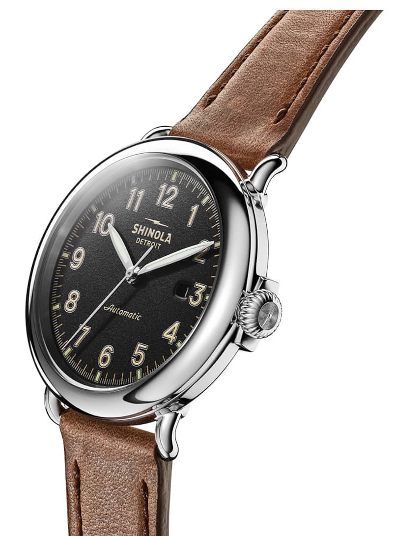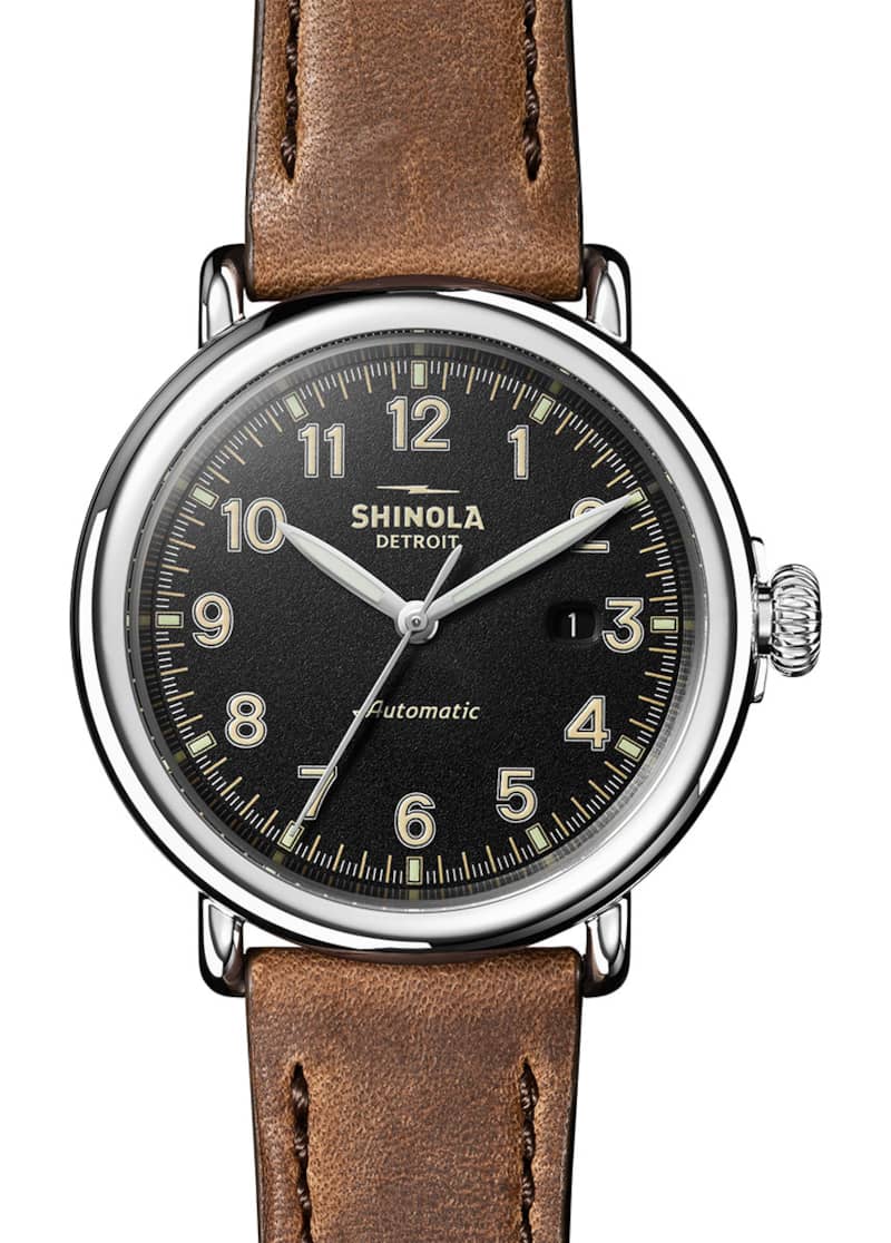 Shinola The Runwell Automatic Matte Black Dial Leather Watch, 45mm