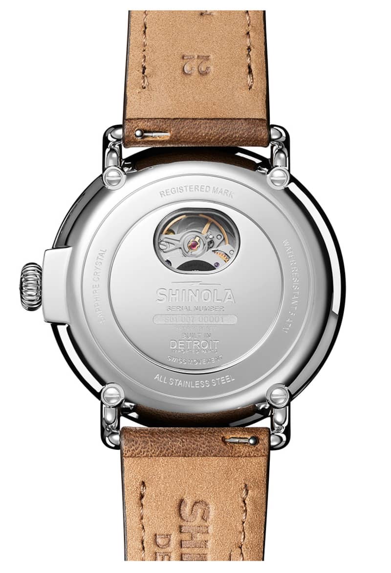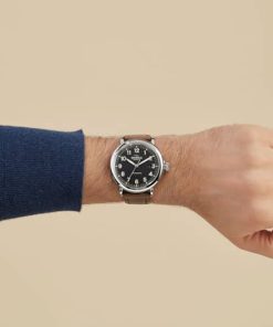 Shinola S0120141490 The Runwell Automatic 45mm Watch w/ Matte Black Dial & British Tan Leather StrapYou’ve been waiting, we??ve been working, and now the Runwell Automatic is finally here. Meet our flagship, now with the heart of an automatic and a refined design that was years in the making. It??s a major evolutionary moment for the timepiece that launched the Shinola brand. Recognizable but refreshed with thoughtful details, including microtracking, a richly-printed dial and an iconic caseback with a window into the inner workings of its workhorse movement, the Sellita SW200-1. Featuring a matte black vellum-textured dial and a premium leather strap in British tan, this heirloom-worthy timepiece is the epitome of the brand??s commitment to quality craftsmanship that refuses to be ignored. Features