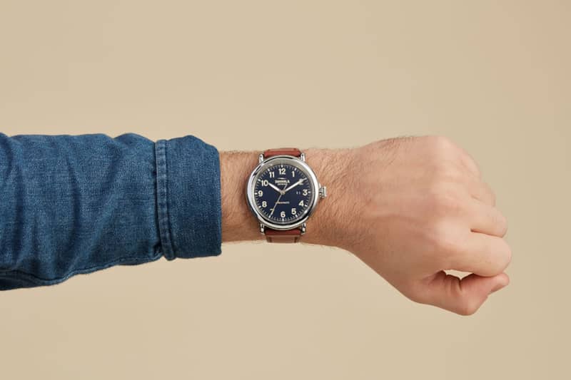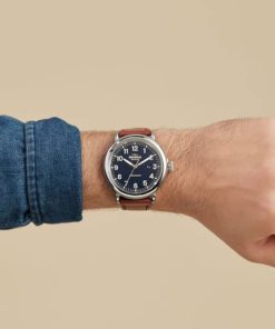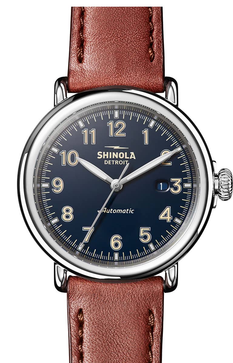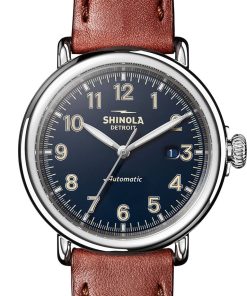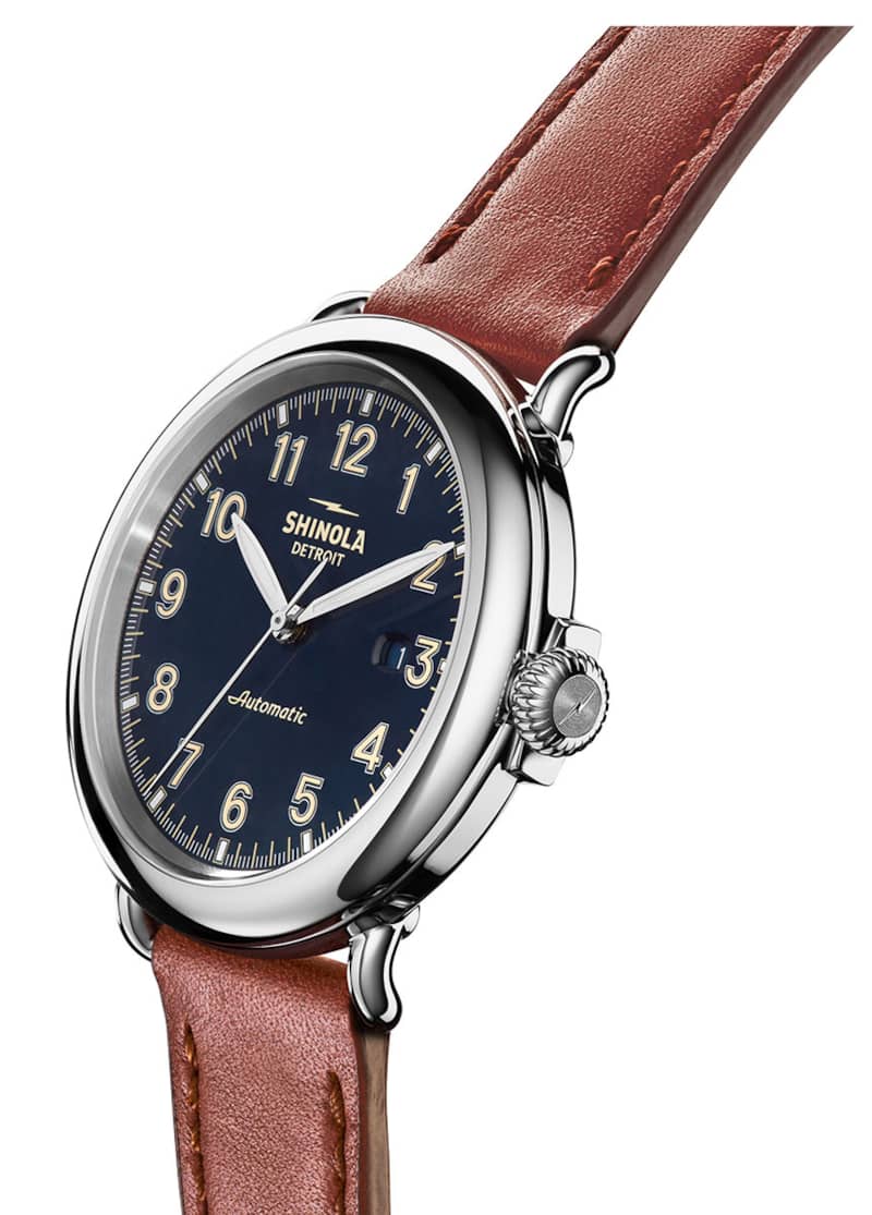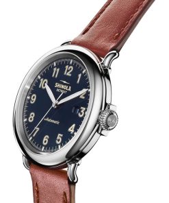 Shinola The Runwell Automatic Midnight Blue Dial Cognac Leather Watch, 45mm