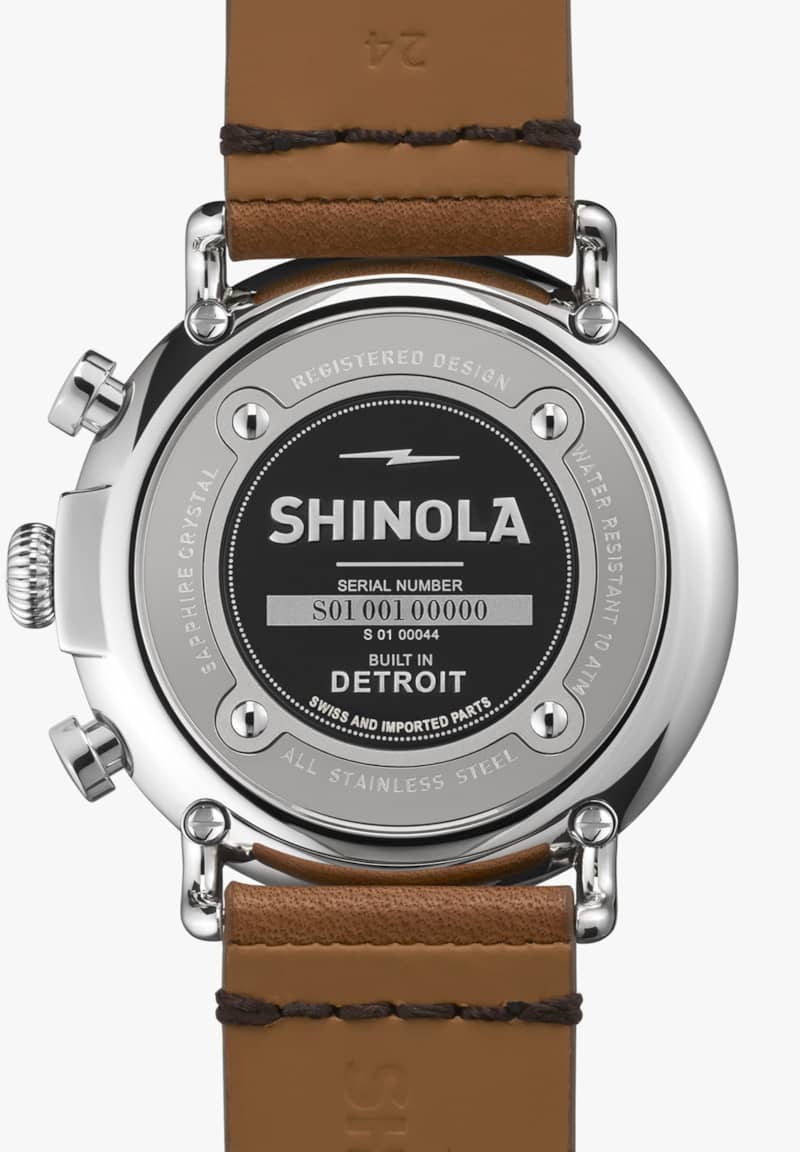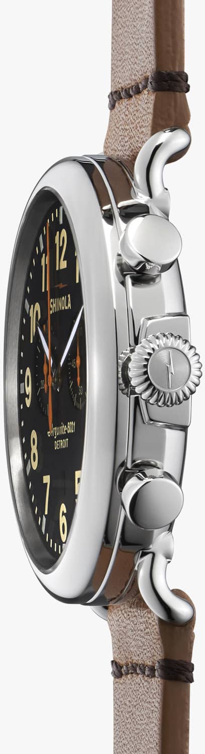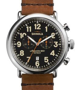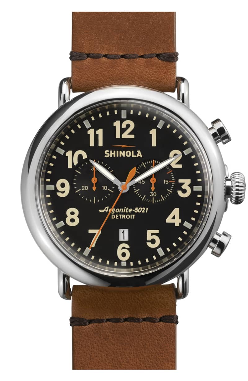 Shinola The Runwell Chrono Black Dial Tan Strap Watch, 47mm
