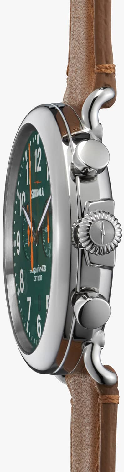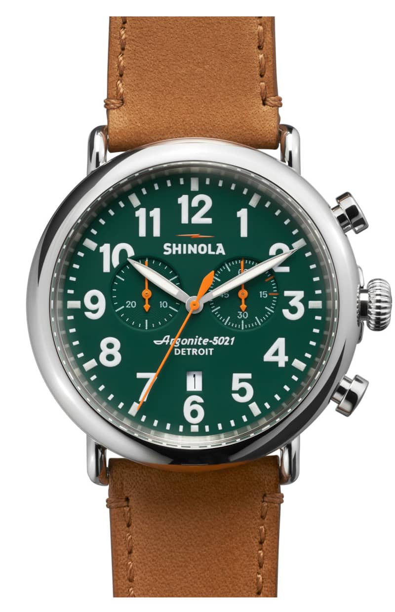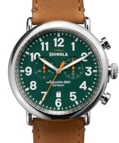 Shinola The Runwell Chrono Green Dial Brown Leather Strap Watch, 47mm