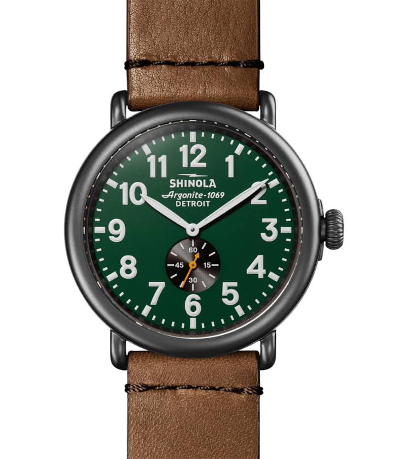Shinola The Runwell Tan Leather Strap Watch, Dark Green Dial, 47mm