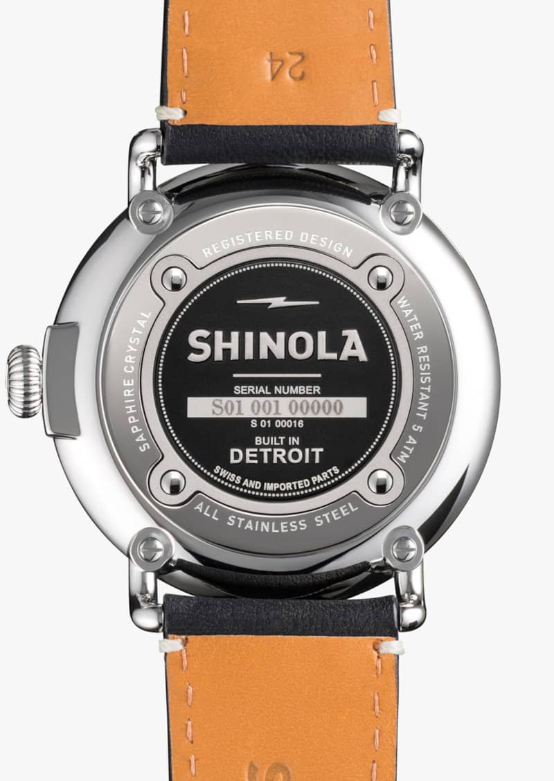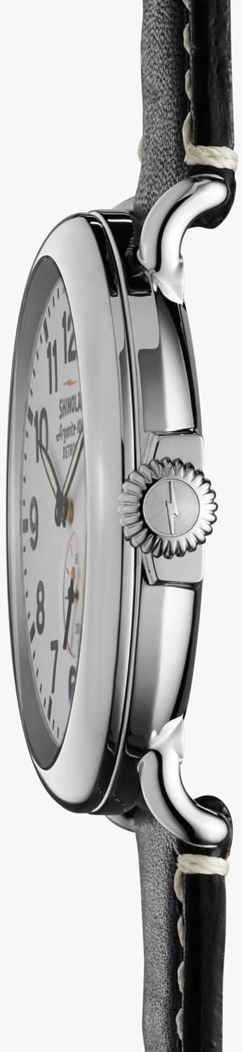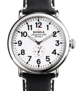 Shinola S0110000016 The Runwell 47mm Watch w/ White Dial & Premium Black Leather StrapBuilt to last, and named accordingly, a timepiece built for life from the finest components available in the world. Features of The Runwell include a sapphire crystal, Super-LumiNova printed dial details, and a solid stainless steel case with screw down crown. Two hands and remote secondhand sweep are driven by Shinola’s Argonite 1069 high-accuracy quartz movement. From the laser-etched case back to the etched lightning bolt on the buckle, every detail of The Runwell has been engineered with an obsessive focus to ensure the highest possible quality. Features