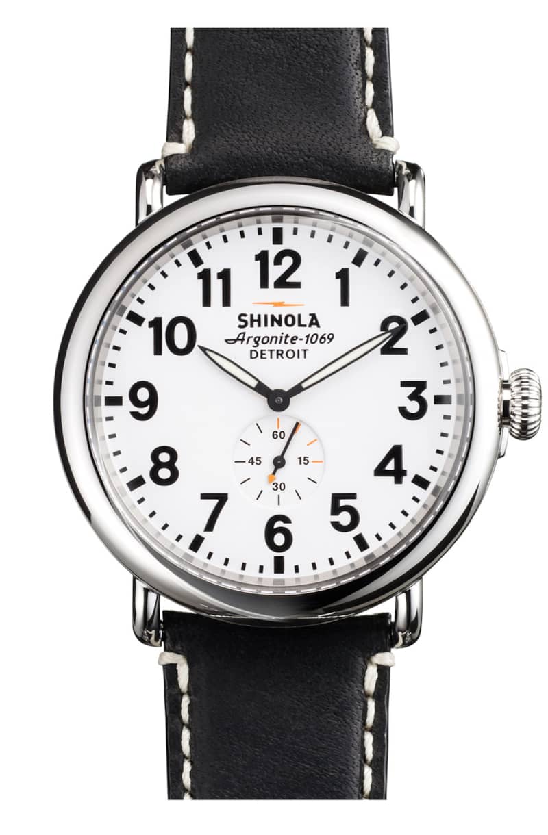 Shinola The Runwell White Dial Black Leather Strap Watch, 47mm