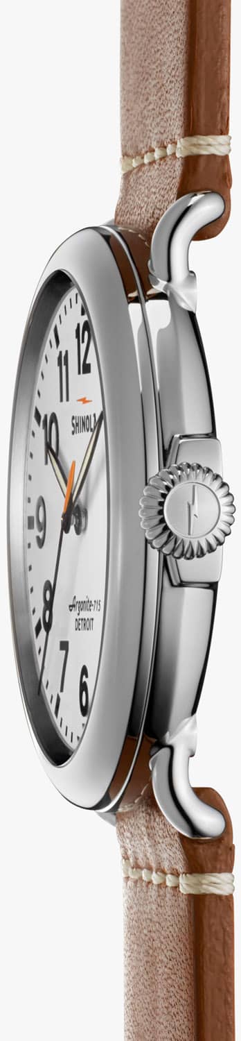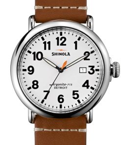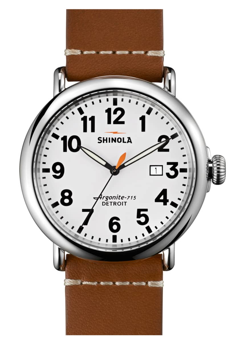 Shinola The Runwell White Dial Maple Leather Strap Watch, 47mm