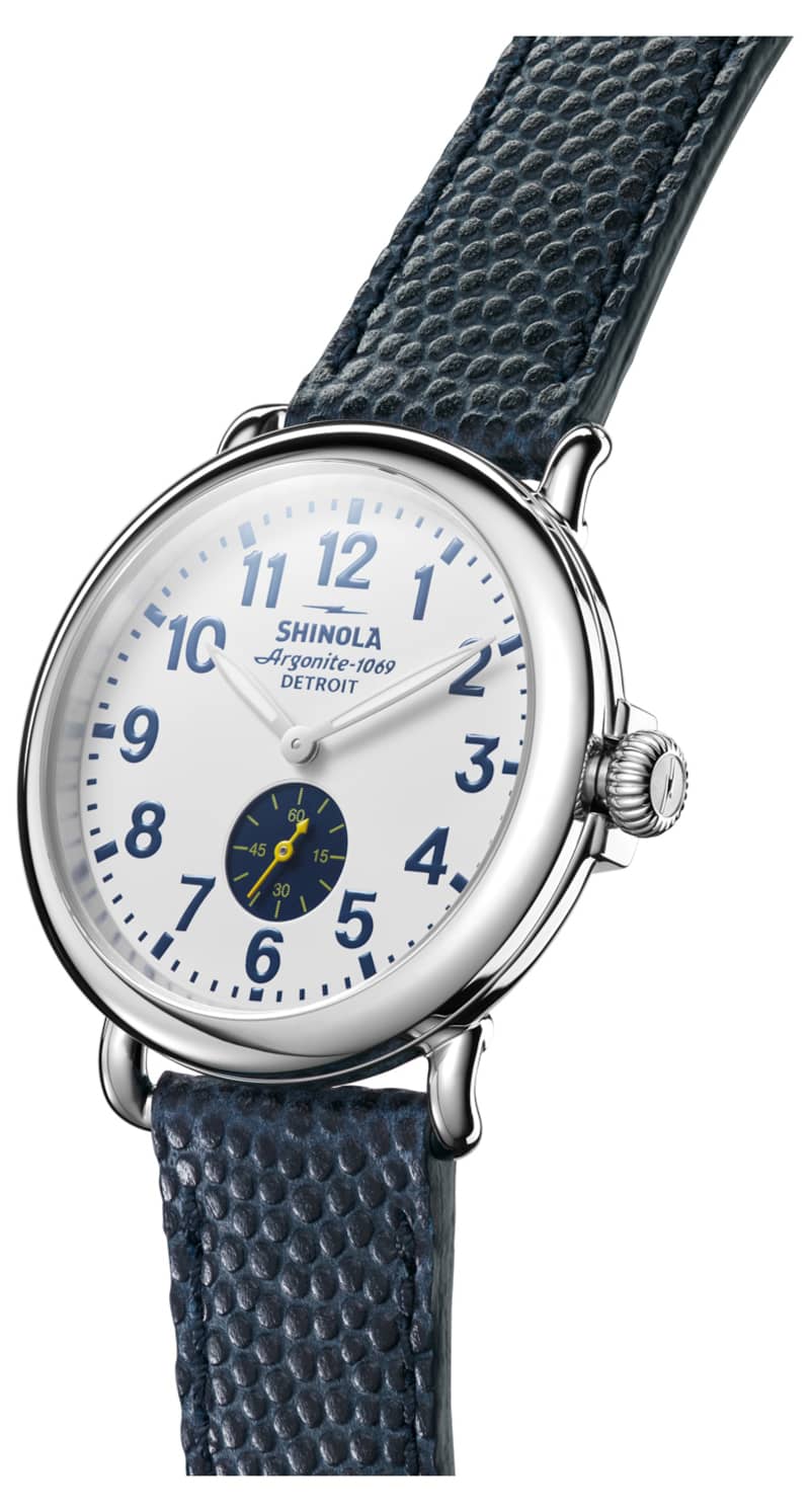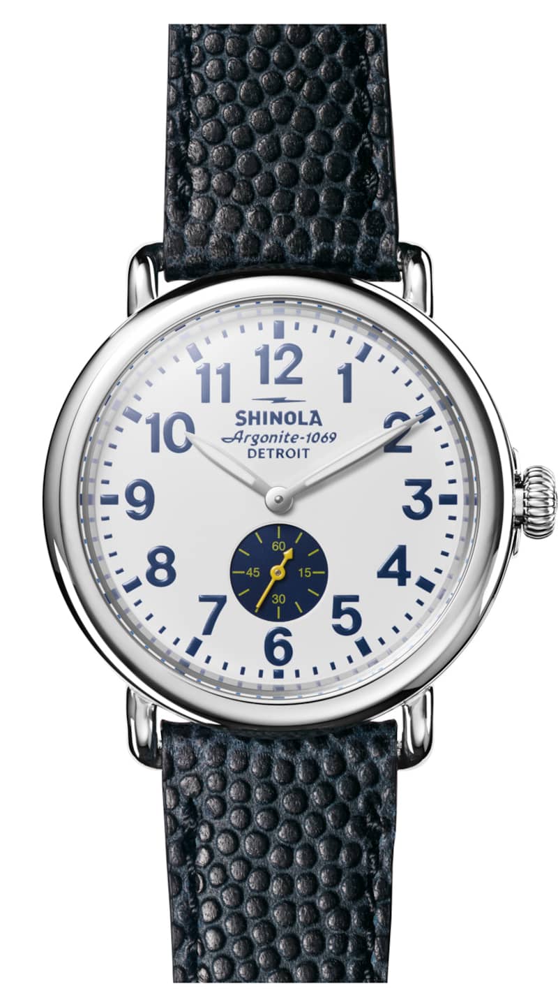 Shinola The Runwell White Dial Navy Leather Watch, 41mm
