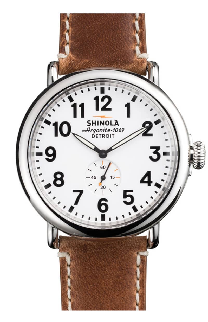 Shinola The Runwell White Dial Tan Leather Strap Watch, 47mm