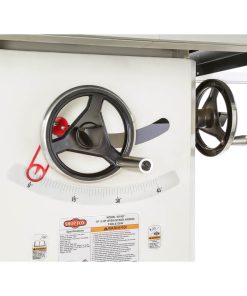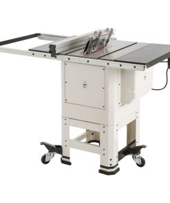 Includes a 10″ x 40-tooth carbide-tipped blade, standard and dado table inserts, miter gauge, push stick, casters, and arbor wrenches