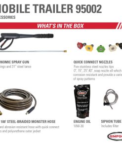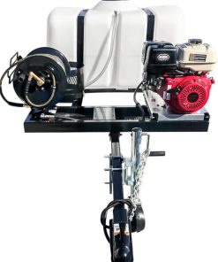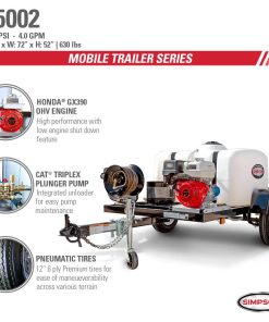 This powerful SIMPSON? cold water mobile pressure washing system will handle all your commercial jobs. It is perfectly suited for contract cleaners, mobile detailers, municipalities, and resorts. The trailer is dot certified as an over-the-road pressure washer system. Job-Site set-up is a snap. Pull up to the work area, connect the spray gun, start the engine and begin cleaning. Equipped with a 49-state compliant HONDA? engine and reliable CAT PUMPS? triplex pump.