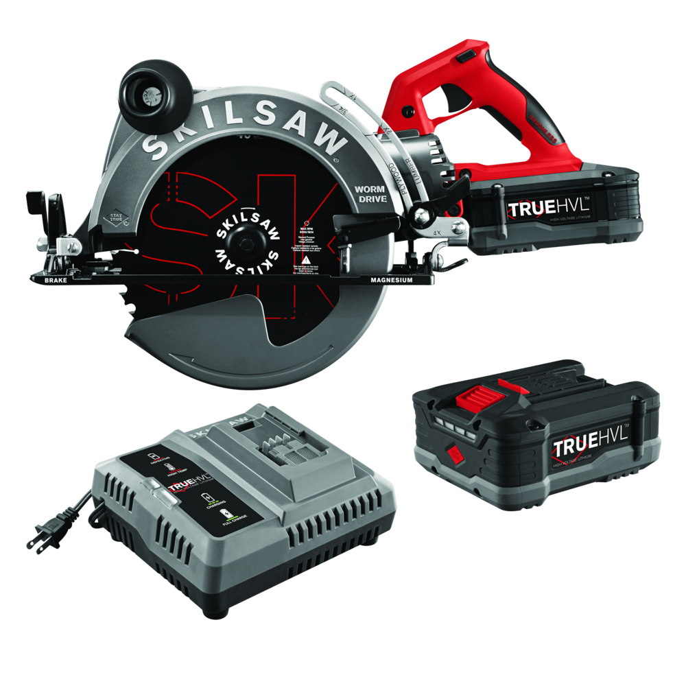 From the creators of the first ever cordless worm drive, comes the 10-1/4?? cordless worm drive saw with legendary SKILSAW power to go anywhere. With a 3-11/16?? depth of cut, this cordless saw can cut 4x material in a single pass. Powered by the TRUEHVL? battery, designed specifically for our legendary Worm Drive saw. The brushless motor responds to challenging applications by boosting power and torque, and all-magnesium construction makes it lightweight and tough. TRUEHVL? features a unique battery design that maximizes heat dissipation, patented Stay Cool? technology that wraps each cell in a temperature controlling material, and intelligent power management that monitors and optimizes each cell. Go from zero to full charge in only 1 hour. Get all the power you need, from the ONLY 10-1/4?? cordless Worm Drive saw. For optimal performance, recommended use with SKILSAW blade 76240. This kit includes a 10-1/4″ SKILSAW blade, Two 5.0Ah TRUEHVL? lithium batteries, and TRUEHVL? Quick Charger. SKILSAW has redefined power. Again. Includes 2 Battery