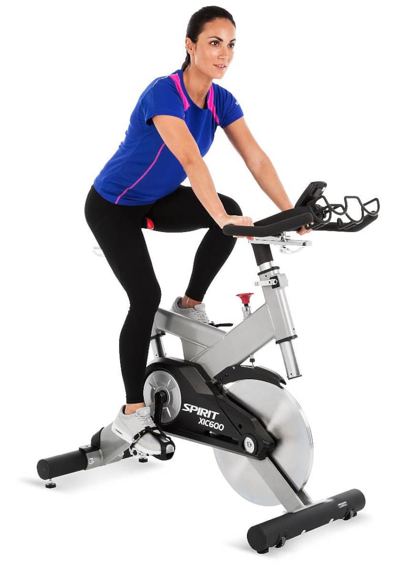 Spirit Fitness 600377 XIC600 Exercise BikeWith components of similar quality to expensive outdoor bikes, you can train on the XIC600 Indoor Cycle in the comfort of your own home. A heavy duty 48.5 lb precision balanced chrome plated flywheel, belt drive system, and superior cranks create a system that is smooth, quiet, and durable. Both the seat and handlebar adjustments provide infinite settings (fore/aft/up/down) via the fast adjustment levers allowing you to precisely adjust your bike to your specific needs. Wireless LCD console, dual water bottle holders, comfort groove racing saddle, and PVC coated multi-grip handlebars are all standard. Start training to your full potential with your own XIC600 Indoor Cycle. Features