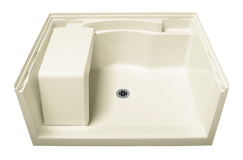 Accord seated shower floor and base of white Vikrell material. Versatile wide seat can be positioned on right or left side of shower, or can easily be removed. Removable seat dimensison are 24-1/4″ x 15-11/16″ X 3-7/8 and can hold up to 300 lbs. (pounds). For use with shower wall set, ADA compliant with Grab Bars and Sterling doors, see Related Items. 10 year limited residential warranty. Drain not included. Shower base only – wall set not included.