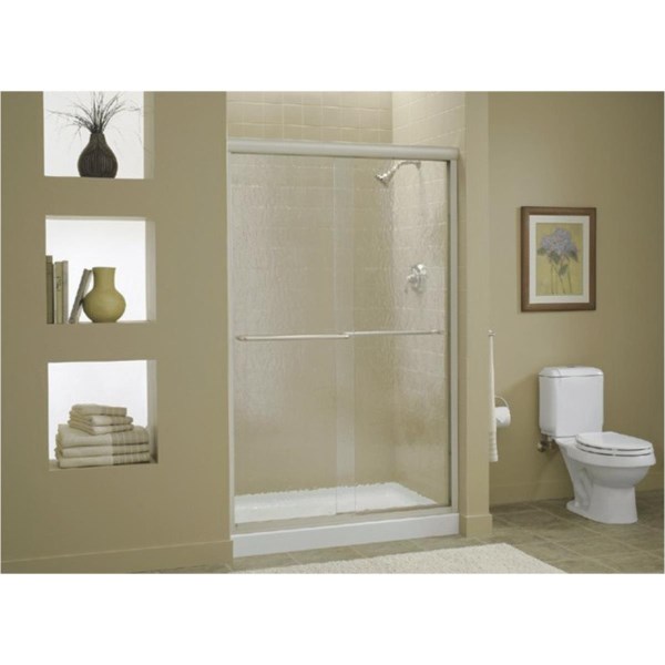 From the most popular series by Sterling, the Finesse Frameless By-Pass Shower Door offers longlasting, durable construction with modern, minimalist appeal and functional performance. A variety of textures and finishes ensures a match in any style bathroom. CleanCoat technology, a standard on all frameless doors, creates a barrier between the water and glass to help keep your shower door looking new. Select colors for specific glass and frame finish options. Track system features brass insert rollers combined with a continuous contact bottom track for a smooth, silent operation. The frameless design highlights bathing area. 2 through the glass towel bars located both inside and outside enhance the appearance and useability. 5 year limited warranty.