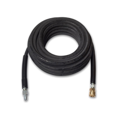 The 50 ft high-pressure hose extension is a steel braided, heavy-duty hose compatible with the STIHL RB 800 pressure washer. It can be used as a replacement or extension hose and features a chemical-resistant synthetic rubber inner tube.