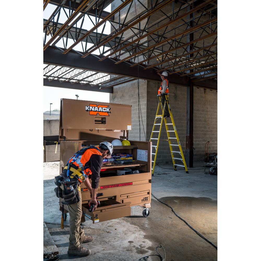 Mobilize the KNAACK? box easily with optional wheel casters, 4-way skid access, and recessed side handles