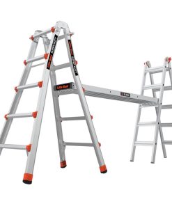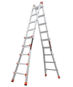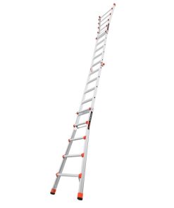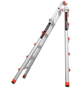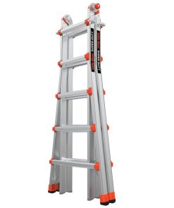 When you need industrial-strength, only one ladder will do the Little Giant Type 1AA. It??s government rated to a whopping 375 Lb., so you know it can stand up to even the most demanding applications. The Type 1AA gives you the advantages of traditional A-frame ladders, extension ladders, stepladders and even scaffolding all in one convenient package. The Little Giant is designed to be the safest ladder on the planet and can be used safely on stairs, ramps, curbs, docks or other uneven surfaces. The Little Giant is made of heavy-wall, 6005-T5 aluminum, the very same material used in aerospace construction. When you buy a Little Giant, you??re getting the world??s most versatile ladder system. The M22 has a step ladder height of 5 ft. & adjusts up to 9 ft. in 1 ft. increments. The extension height is 11 ft. & adjusts up to 19 ft. in 1 ft. increments. This ladder stores in 4 ft. 7 in. of space.