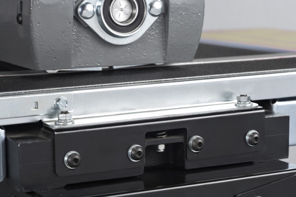 Simple alignment feature just one nut will adjust the conveyor to parallel the sanding head, making aligning the conveyor to the sanding head fast and easy.