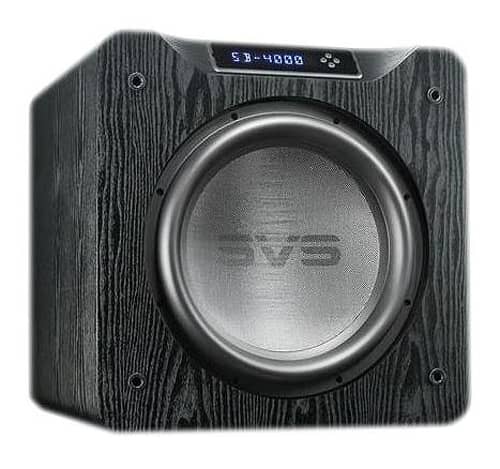 SVS SB4000BLACKASH 13.5″ 4000 Series Black Ash SubwooferChest-thumping slam and low frequency extension below the threshold of human hearing, with refined musicality ?C a level of subwoofer performance not seen at this price before. The SB-4000 subwoofer’s sophisticated DSP amplifier, innovative driver and a sealed box design master room gain and command a space with deeper bass and higher output levels than what is typically possible from a subwoofer of its size. An ideal option for reference quality bass in audiophile music or home theater systems, the SB-4000 sets all performance benchmarks for a subwoofer and leaves larger and more expensive subs trembling in its wake. Features