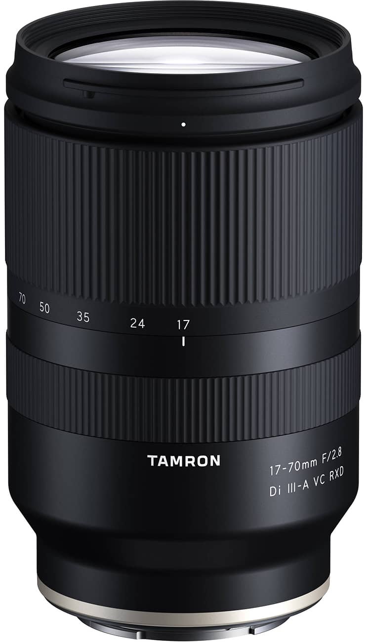 Tamron AFB070S-700 17-70mm f/2.8 Di III-A VC RXD Lens For Sony EThe World’s First 17-70mm F2.8 Wide Range 4.1X Standard Zoom Lens with VC for APS-C Sony Mirrorless Cameras* The new 17-70mm F2.8 is Tamron’s first high-speed zoom lens for mirrorless cameras with APS-C size sensors and is the world’s first high-speed standard zoom lens for APS-C cameras with the focal length range of 17-70mm 4.1x zoom ratio. It features a maximum aperture of F2.8 across the entire 4.1x zoom ratio covering a focal length of 17-70mm (a full-frame equivalent of 25.5-105mm) ideal for everyday use, and superb optical performance. It is a small, lightweight lens that is also equipped with Tamron’s VC (Vibration Compensation) mechanism to minimize camera shake. When shooting video, by leveraging AI technology, image stabilization performance improves compared to conventional models. The lens features Moisture-Resistant Construction, Fluorine Coating and a ?67mm filter size ?C the same as the Tamron series of lenses for full-frame mirrorless cameras. Compatible with many of the features that Sony builds into its cameras, including Fast Hybrid AF and Eye AF, the lens is the ideal everyday zoom lens for a multitude of situations. It is a highly practical lens that enables photographers to attain high image quality while enjoying the benefits of the large F2.8 aperture. Features