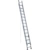 Heavy-duty industrial extension ladder. Features deeply serrated, 1-3/4 In. wide, flat type rungs. Modified I beam interlocking side rails are 3 In. wide. Has mar-resistant end caps and rail closures. Smooth operating pulley with polypropylene rope. Extruded rung locks with spring-activated nylon flipper. Shoes rotate easily and lock into spur position for penetrating grass and dirt. UL listed and labeled. Rope and pulley on 20 Ft. and larger only. Meets OSHA standards. Type I heavy-duty industrial rating 250 Lb. load capacity.