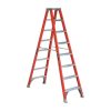 Built to last, the WERNER 375 lb duty-rated 7410 fiberglass 10 ft step ladder is rugged and ready for the job. This ladder features extra heavy-duty aluminum HolsterTop®, internal spreaders and external rail shields for long lasting durability. With The EDGE® bracing system and GLAS*MARK® violator stripes on the rails, the 7400 Series is built to handle the worksite and stands ready for tough jobs. Fiberglass rails are non-conductive for working near electricity.