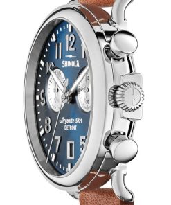 Shinola The Runwell Chrono Midnight Blue Dial Tan Watch, 41mm