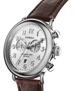 Shinola The Runwell Chrono Silver Sunray Dial Brown Leather Watch, 47mm